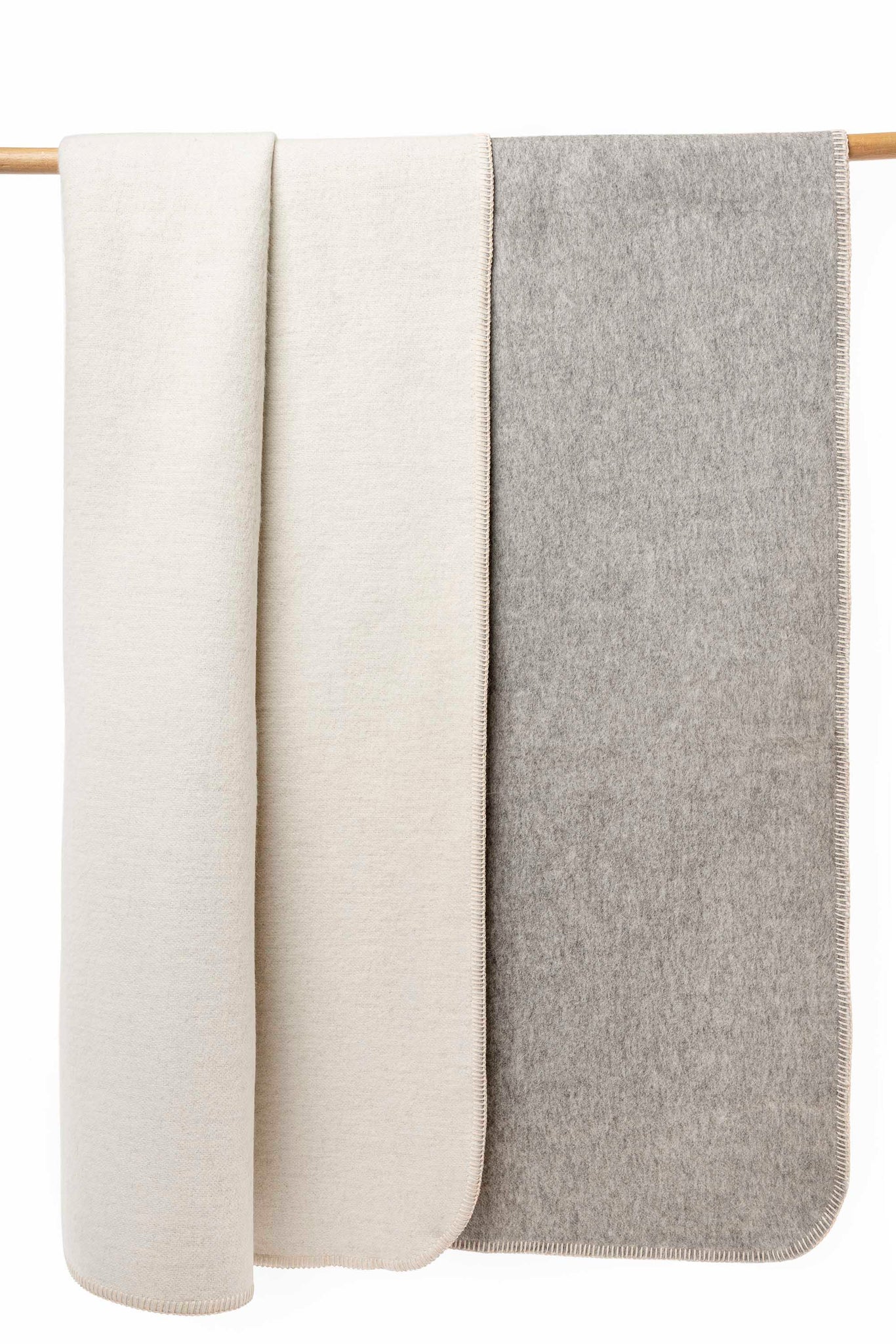 Handwoven Reversible Alpaca Blanket | Natural Undyed Colors | Bicolor with Whipstitch Border